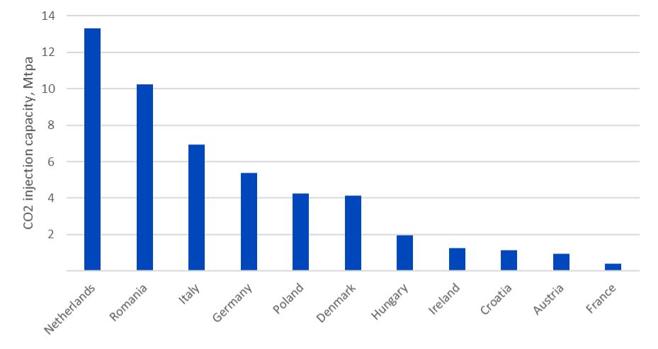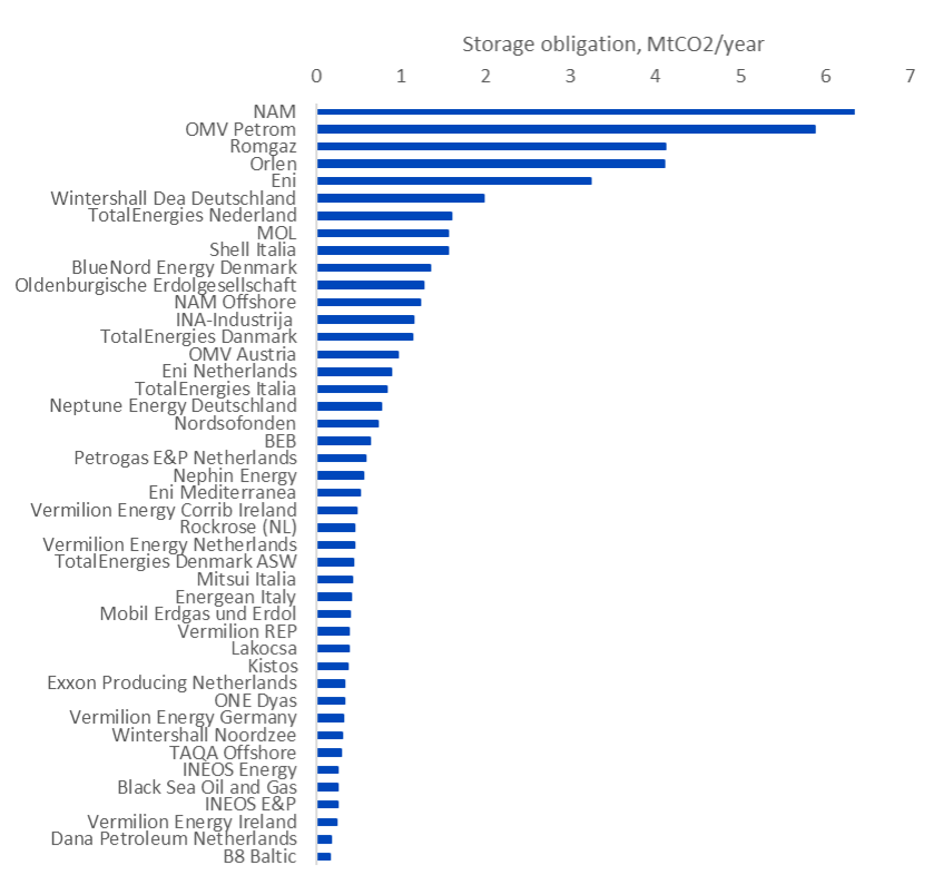 Figure 1. The CO2 storage capacity obligations of all 44 licence-holding entities identified by the European Commission.