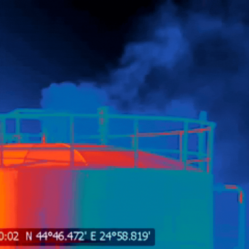 Visual evidence was captured at abandoned and active wells, processing facilities, storage tanks, and compressor stations. Footage was recorded by Théophile Humann-Guilleminot, certified ITEMA Level 1 Infrared Thermographer, using a FLIR GF320 camera, an industry-standard tool calibrated to detect hydrocarbons and particularly methane.