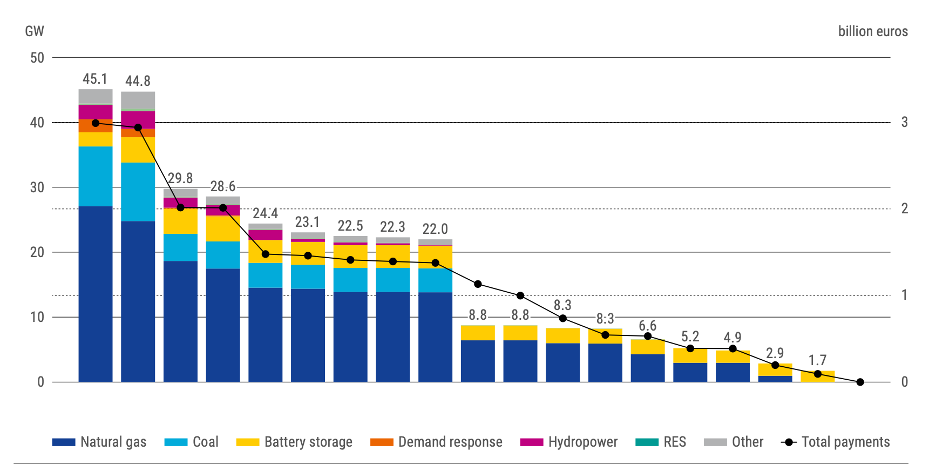 Current capacity mechanisms overwhelmingly support fossil generation. ACER reports that only about one third of capacity support payments go to clean technologies, with gas leading in long-term contracts.