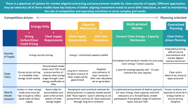 Figure 3: Spectrum of options for market-aligned contracting and procurement models for clean security of supply