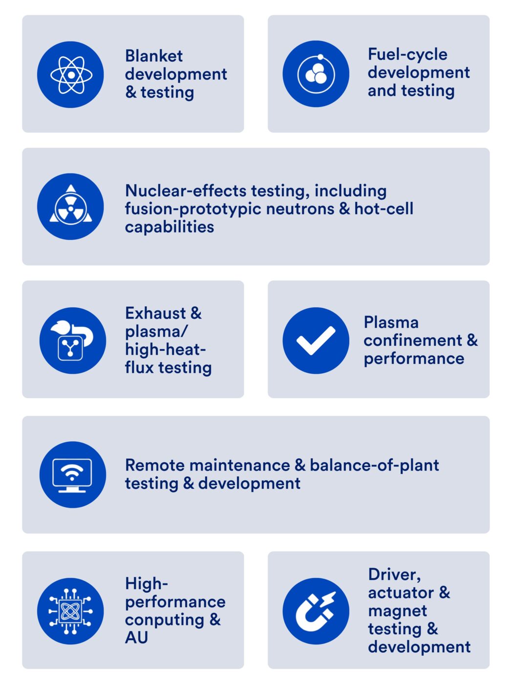 Fortunately, the Department of Energy’s “Build, Innovate, Grow” fusion strategy charts a clear pathway towards generating this essential data. The Science and Technology Roadmap provides an “Infrastructure Map” to build the test stands capable of generating experimental data to close these outstanding technology gaps. In the near term, new small- to medium-scale test stands must be built to better isolate and study these phenomena under fusion-relevant conditions. Construction must begin in earnest so that the Genesis Mission can produce results on the timeline of private sector developers. In parallel, large facilities identified as essential in the Science and Technology Roadmap, including an integrated Blanket and Fuel Cycle Test Stand as well as a Fusion Prototypic Neutron Source (FPNS), would generate data enabling the National Discovery Platform to act as a force multiplier for researchers validating materials, components, and integrated systems, compressing timelines and enabling new discoveries to drive forward commercial fusion energy deployment and scaleup.