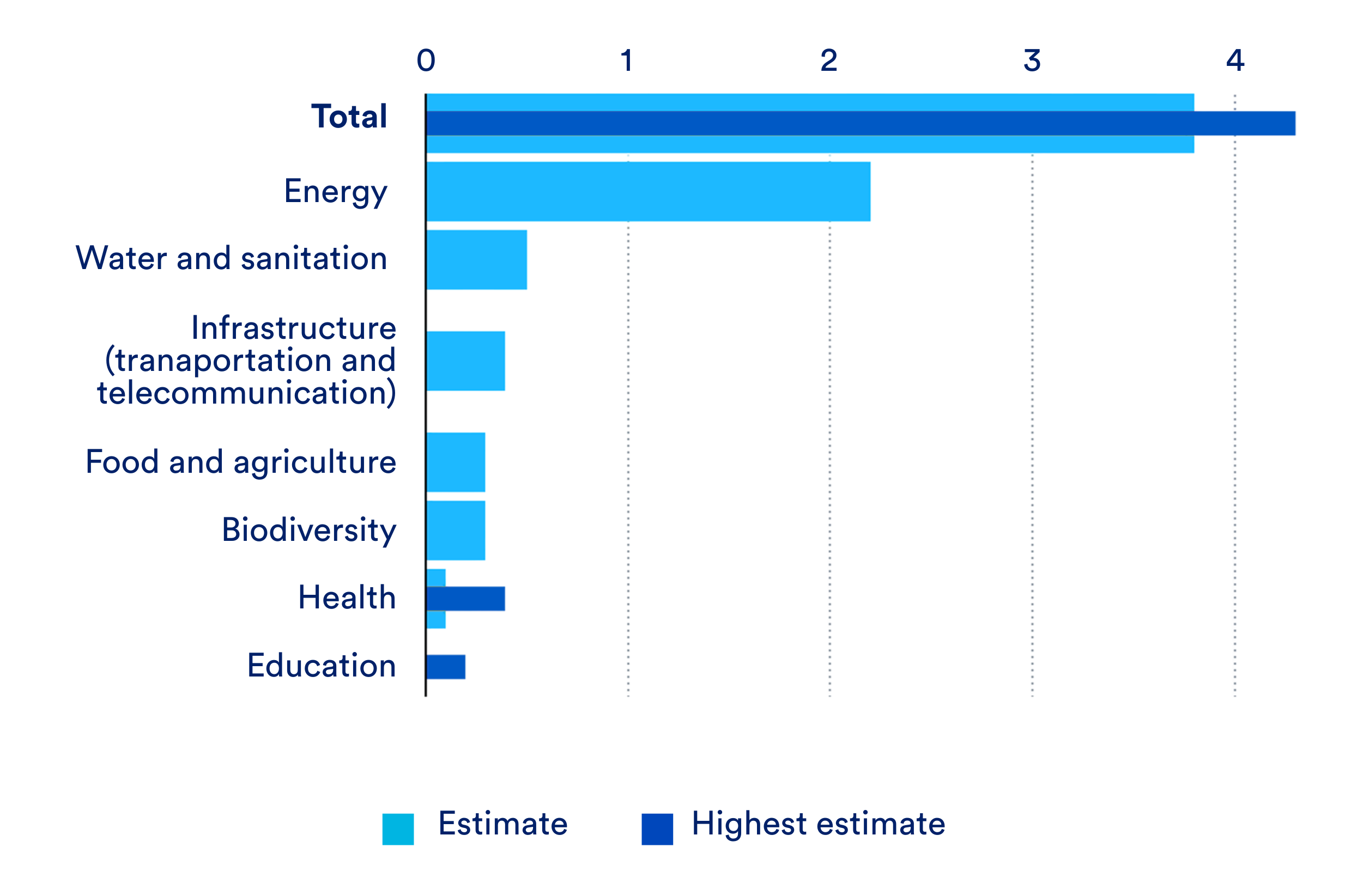 Figure 1. Estimated annual investment gap to reach the sustainable development goals (SDGs) by 2030, total and per sector, capital expenditure, trillions of dollars