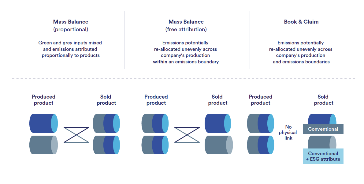 - Different approaches to mass-balance accounting and chain of custody.