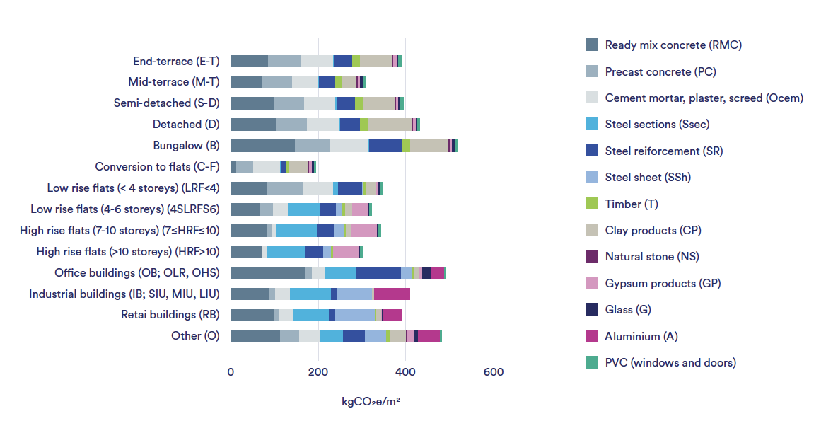 - Drewniok et al. (2023) Mapping material use and embodied carbon in UK construction, Resources, conservation and recycling; 197; 107056.