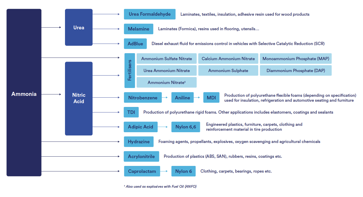 Figure 7. A summary of downstream applications for ammonia.48