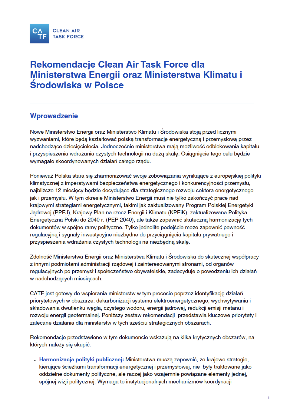 The ability of the Ministry of Energy and Ministry of Climate and Environment to work effectively with other ministries and stakeholders from regulatory authorities to industry and civil society will determine the success of its actions in the coming months. CATF is prepared to support the ministries in this process by identifying priority actions across power system decarbonisation, carbon capture and storage, hydrogen, nuclear energy, methane abatement, and geothermal energy. The following policy guidance document outlines key policy priorities and recommended actions for the ministries across these six strategic areas.