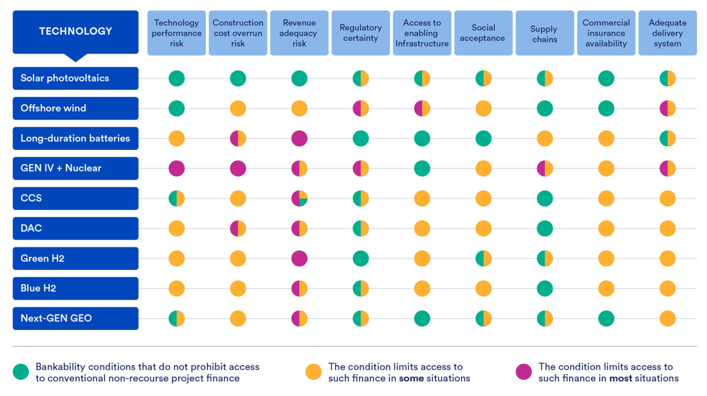 Individual commercial projects can sometimes bootstrap bespoke financing arrangements. This is in contrast to systemic bankability which represents the conditions required to underpin the predictable financial returns needed to mobilize large pools of low-cost private capital at the scale and speed of investment needed for mid- century net-zero goals. Systemic bankability does not simply materialize after the FOAK commercial project and may not even be achieved after the Nth of a kind (NOAK) project, unless all nine risk factors have been properly addressed.