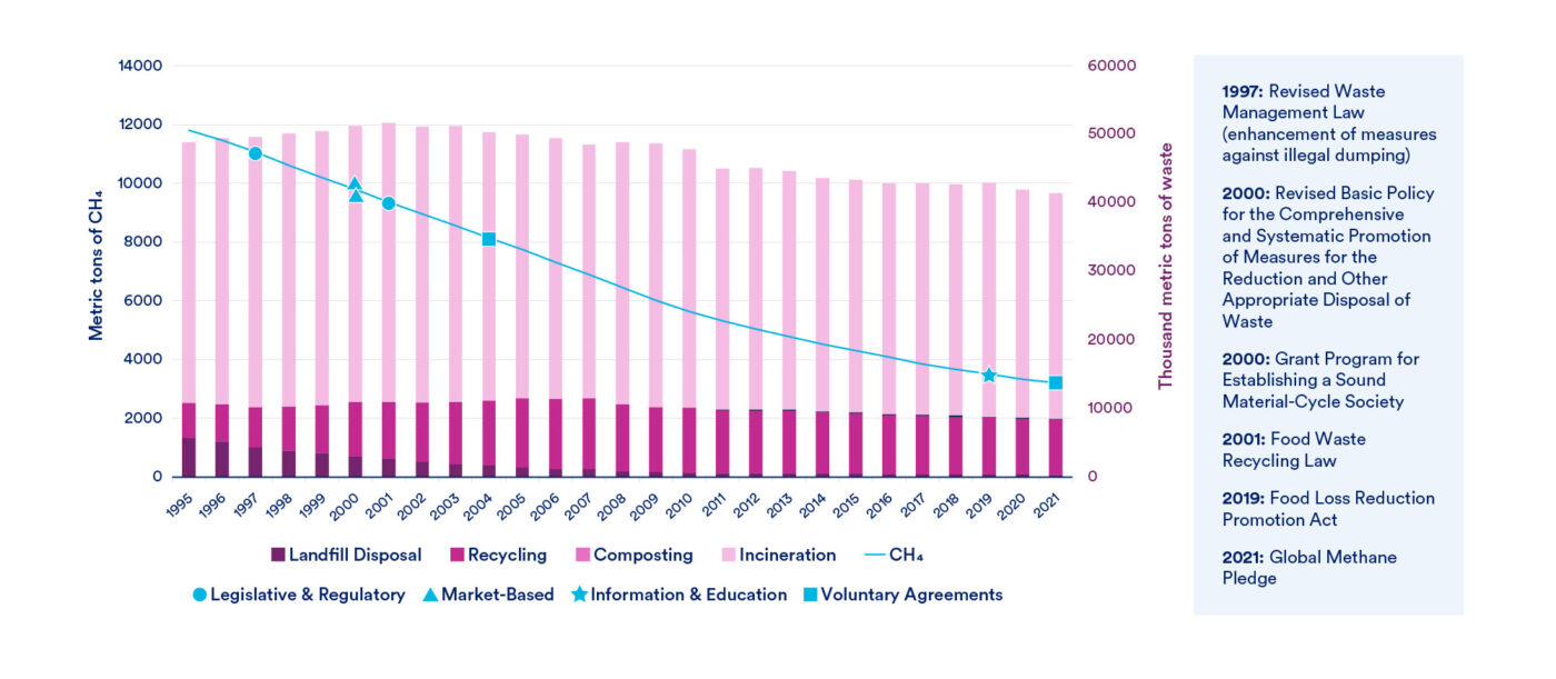 Figure 3: Japan Waste Flows and Methane Emissions (1995-2021)